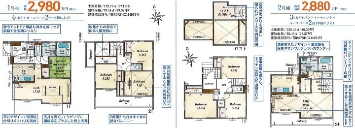 | 土地面積 | 120m2~122.72m2 | 建物面積 | 95.45m2~97.14m2 |