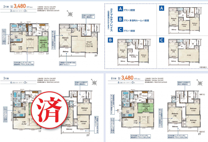 | 土地面積 | 126.57m2~131.54m2 | 建物面積 | 98.9m2~106.01m2 |