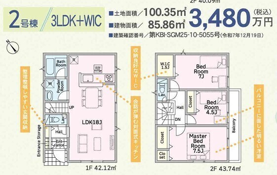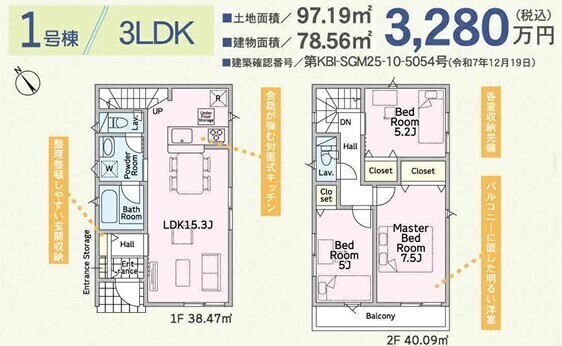 | 土地面積 | 97.19m2~100.35m2 | 建物面積 | 78.56m2~85.86m2 |