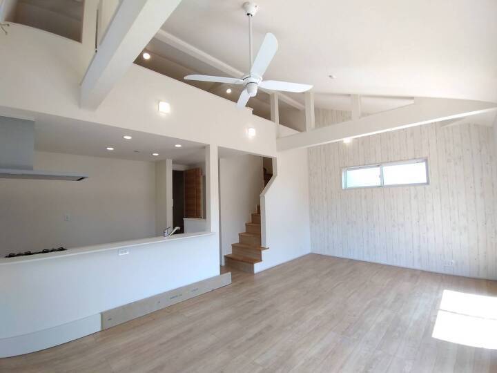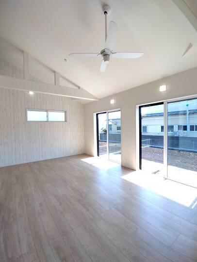 南道路に面した明るい敷地に建つ、ゆとりある平屋プランの1号棟。敷地は 61坪超、駐車は 3台可能と、日常に余裕をもたらす住環境が整っています。18.5帖のLDKは天井デザインが美しく、ロフトを組み合わせることで開放感と遊び心を両立。玄関は広々としたつくりで、土間収納も備え、アウトドア用品やベビーカーもすっきり片付きます。南道路に面した明るい敷地に建つ2号棟は、60坪超のゆとりある土地に4LDK+駐車3台を備えた、家族で過ごしやすいプランです。18帖のLDKは折上天井と勾配天井を組み合わせ、開放感のある空間に。吹抜から差し込む光が室内を明るくし、心地よいリビングを演出します。インナーバルコニーは天候の変化にも対応しやすく、洗濯物にも便利です。玄関には土間収納、各居室にはクローゼットを配置し、収納計画も充実。和室は洋室仕様の“緑なしタタミ”で、現代の暮らしに馴染むデザインです。ゆとりある敷地と開放的な間取りが魅力の2号棟。家族の暮らしにフィットする住まいをお探しの方におすすめです。平屋ならではの生活動線の良さと、ゆとりある敷地が生み出す快適な暮らしを、ぜひご検討ください。