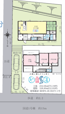 | 土地面積 | 232.06m2 | 建物面積 | 108.89m2 |