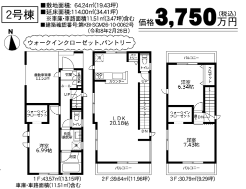 | 土地面積 | 64.24m2~64.51m2 | 建物面積 | 112.19m2~114m2 |