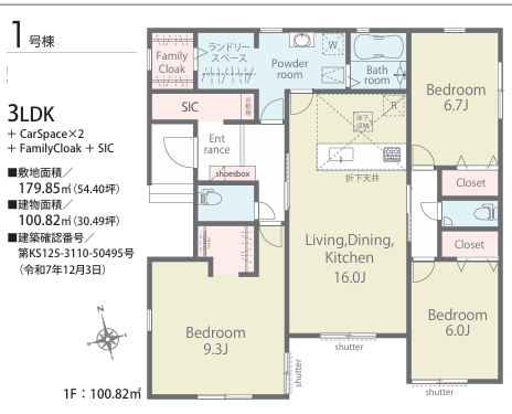 | 土地面積 | 179.85m2 | 建物面積 | 100.82m2 |