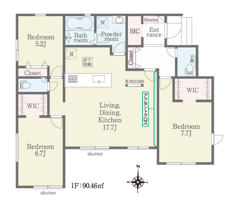 | 土地面積 | 190.37m2 | 建物面積 | 90.46m2 |