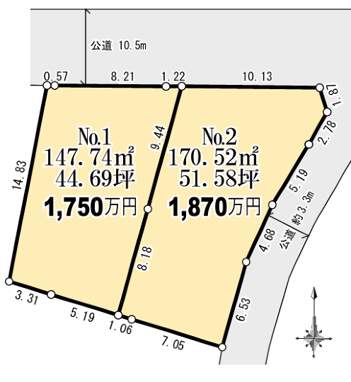 | 土地面積 | 147.74m2~170.52m2 | 地目 | 宅地 |
