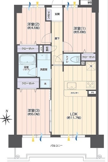 | 専有面積 | 60.76m² | バルコニー面積 | 9.87m² |