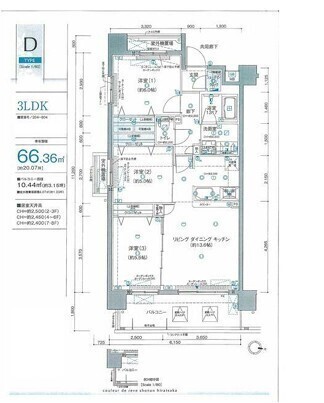 | 専有面積 | 66.36m² | バルコニー面積 | 10.44m² |