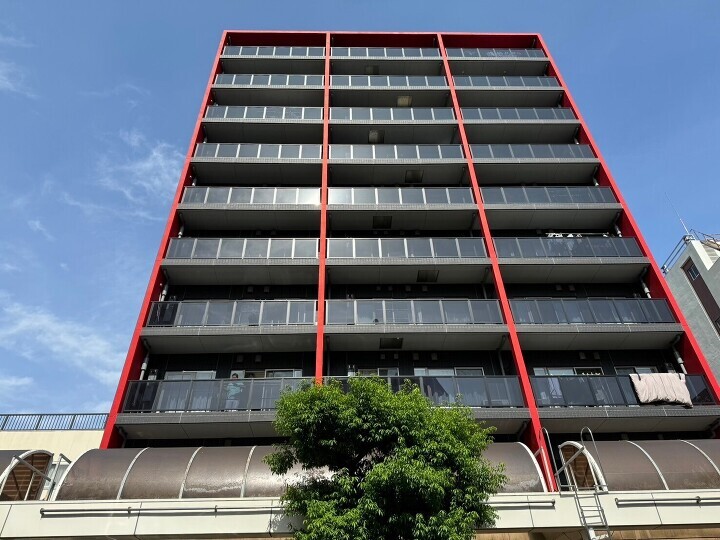 平塚駅徒歩5分の利便性が魅力の「マリーナコースト湘南平塚」4階住戸です。赤いグリッドが印象的な外観で、オートロックや防犯カメラなどのセキュリティ設備も整っています。室内は2LDK+SIC、バルコニー面積にもゆとりがあり、通風・採光ともに良好な住まいです。現在賃貸中のオーナーチェンジ物件です。(月額賃料106,000円、年間収入1,272,000円、表面利回り3.97%。)